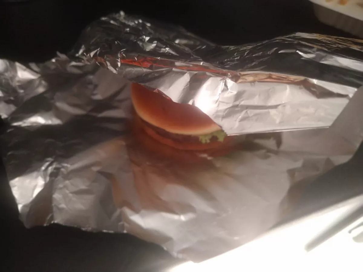 - 2. Wrap up whole burger in aluminium foil