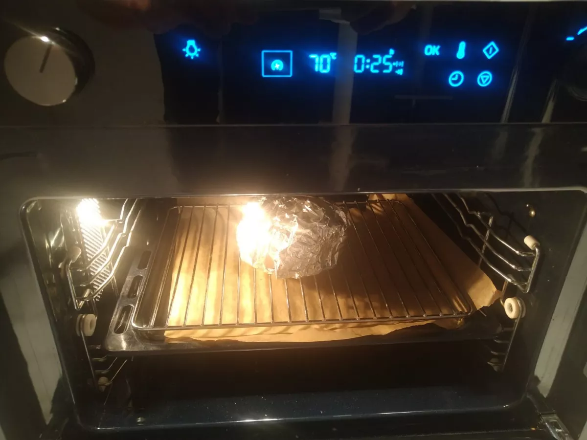 Then, simply wrap in aluminium foil your whole burger while the oven is warming up to reach 70°C/160°F.